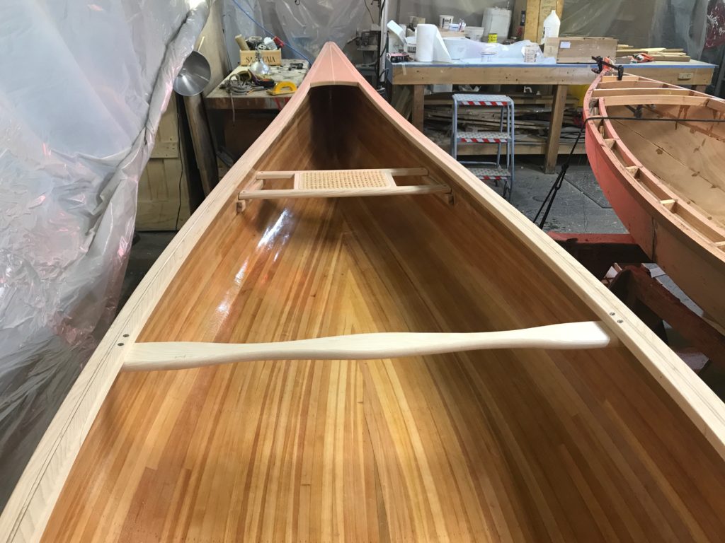 Just before the deep January cold set in, the VCB canoe building crew put the final touches on their project. Gunwales, decks and seats were carefully finished and fitted in place. The inside and outside of the canoe still need another coat of epoxy and several coats of varnish. But that finishing will have to wait for warmer weather. We are pleased with the lines of this new VCB craft, and we think it will very happily take to the water in a few months.