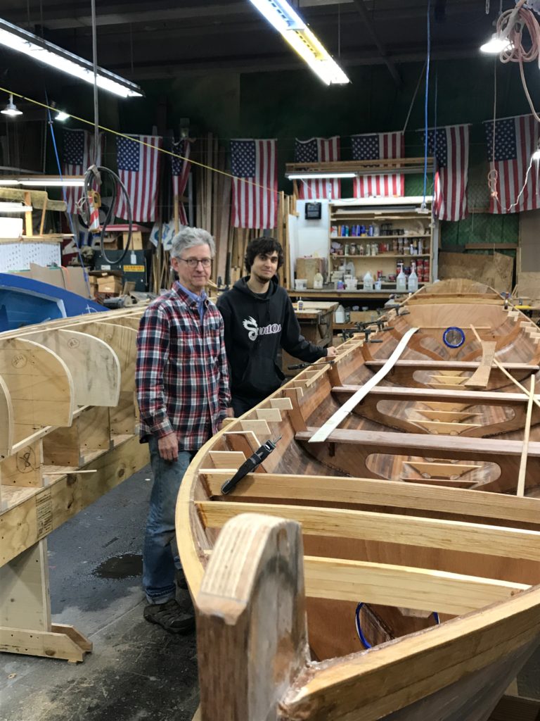 Lorne and Marcel – Boathouse foremen with David T Heim Strip-built Whitehall Gig