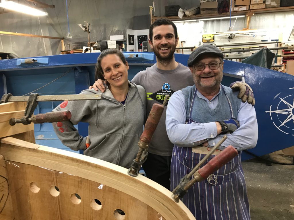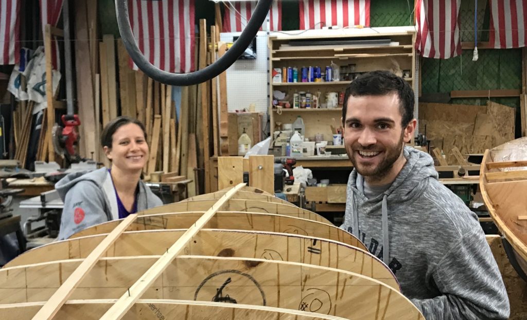 Anne and Brian working on molds for Ranger Canoe – 15′ strip-built canoe