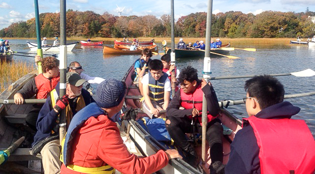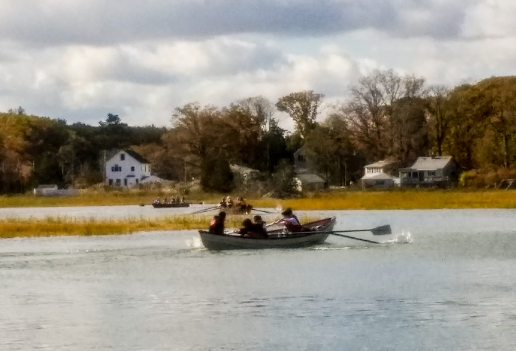 On Saturday, October 26, the Village Community Boathouse sent race crews to Hull to participate in Head of the Weir. The race is a five and a half-mile open water course starting at the head of the Weir River, traversing Hingham Bay, and ending at Windmill Point. Conditions were particularly favorable for a row that morning, as minimal wind and temperatures in the low 60s made the race feel more like a leisure cruise to take in the changing foliage