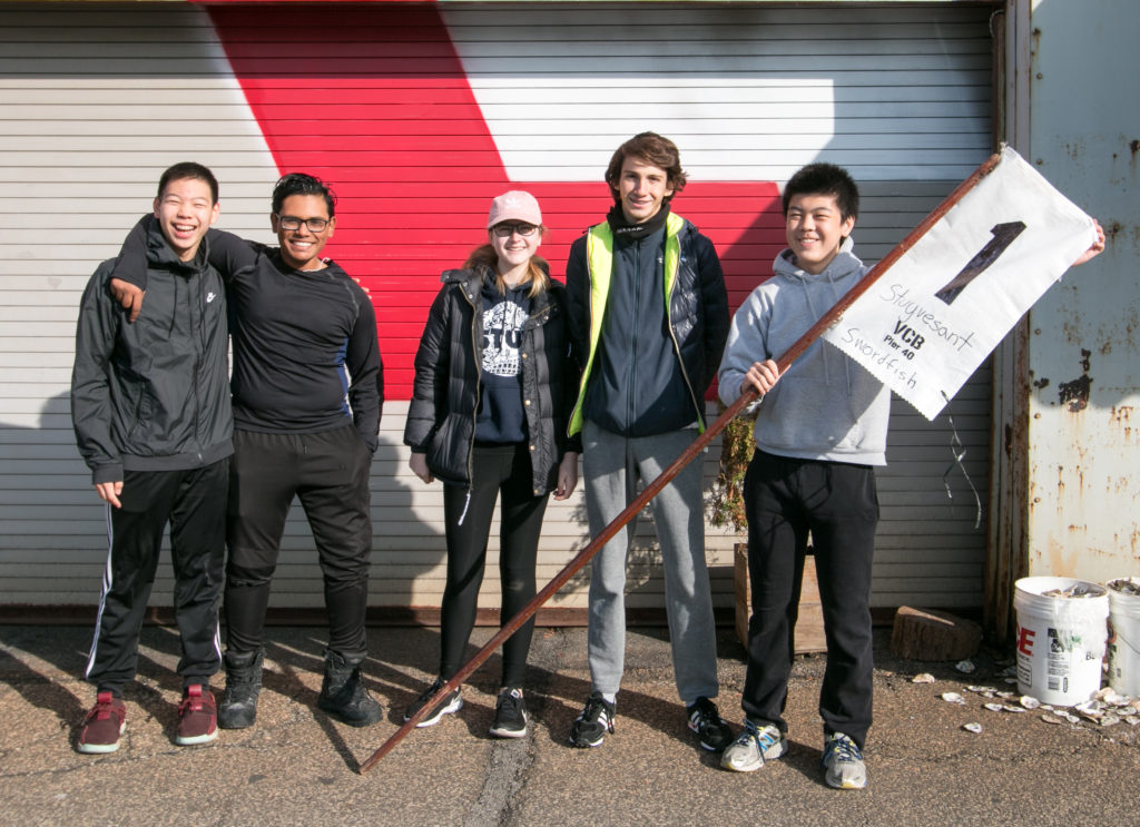 On a sunny and cold Saturday, Village Community Boathouse hosted its annual Youth Race at Pier 40. With 80 participants, this was our largest race to date. Teenagers came from four different rowing clubs: Stuyvesant High School and NY Harbor School, both in New York City; the Sound School of New Haven, Connecticut; and Cortlandt Community Rowing in Westchester County. The Cortlandt kids were at a disadvantage because they normally row shells on quiet water and were unaccustomed to Whitehall gigs. Nonetheless, they performed well, and all the groups walked away with some prizes. In the words of announcer Michael Anton, “There are no losers today.”