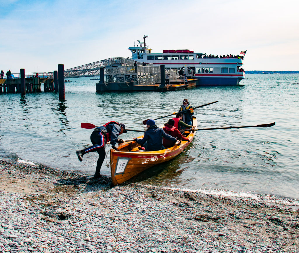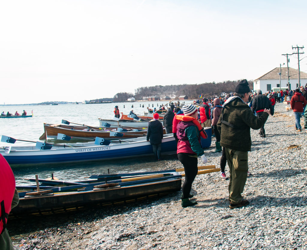 On Saturday, March 5th, Village Community Boathouse sent two crews to the Hull Lifesaving Museum’s 41st annual Snow Row. It was a lovely, spring-like day, not too much wind, not too cold, and the sun was shining- almost ideal conditions. There was a celebratory atmosphere as this odd and diverse community of open water rowers got together on the beach once more after Snow Row and other open water races had been canceled for the past two years.