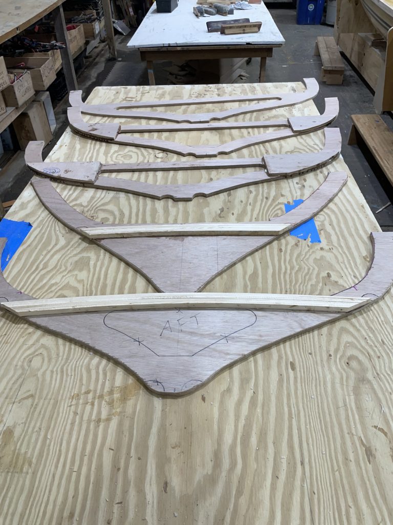 Under Marcel’s direction work on the frames and floors proceeded also. We should be able to start gluing these into the gig next week.