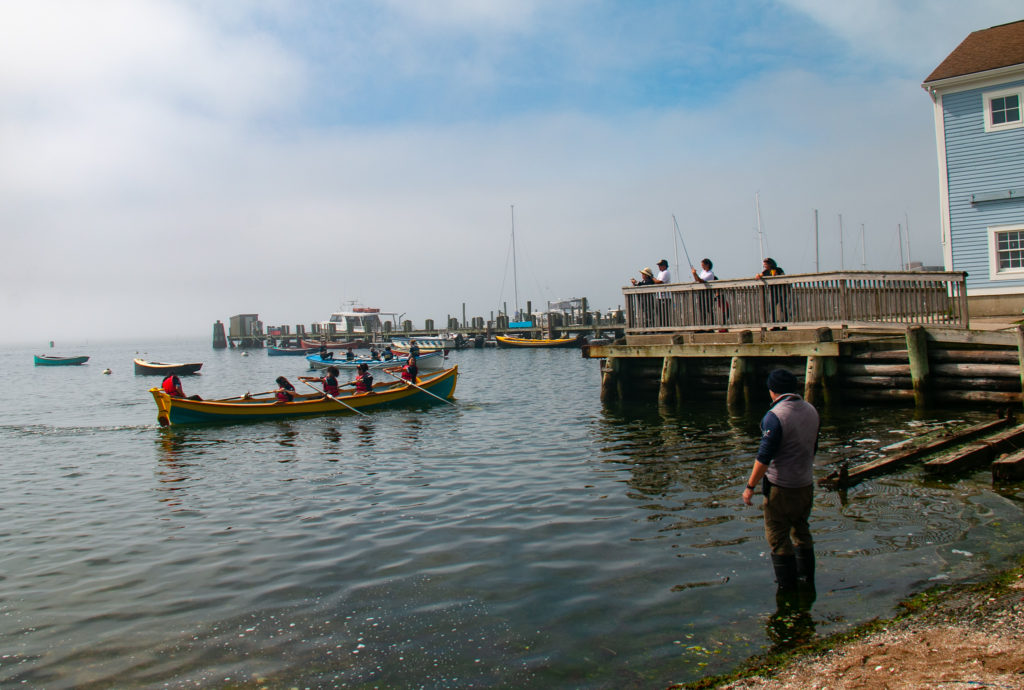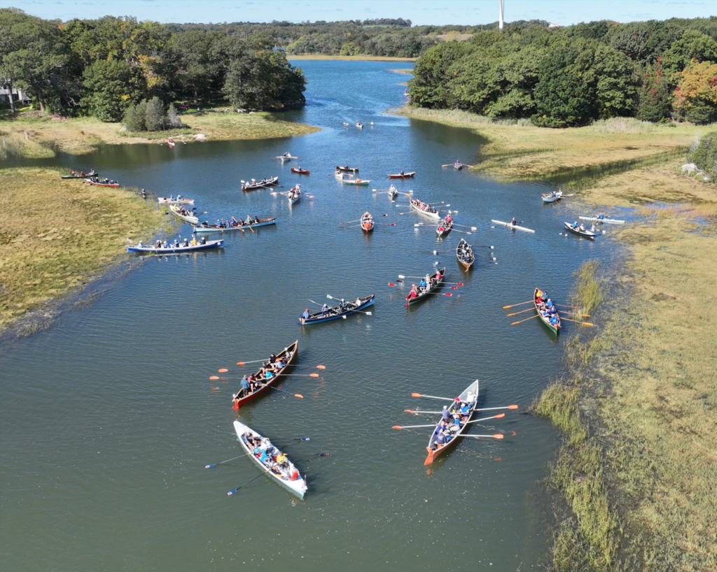 On a brisk autumn weekend, a racing contingent from the Village Community Boathouse made its annual fall journey to Hull, Massachusetts to participate in the Hull Lifesaving Museum’s Head of the Weir River Race. The race course is a spectacular five and a half mile stretch that takes participants from the head of the Weir River, under a bridge lined by cheering spectators, through Hingham Bay, and finally to the finish line marked by the pier at HLM’s Pemberton Point boathouse.