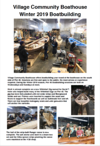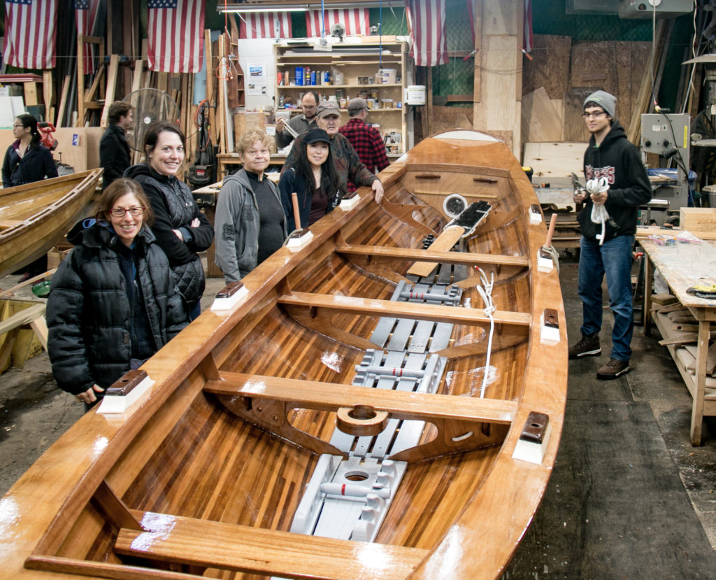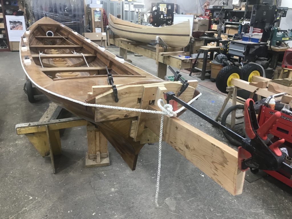 This has been a busy Spring of boatbuilding on Pier 40. The work has been carried forward this spring by a steady team of volunteers working Wednesday and Sunday afternoons, augmented by members and visitors who want to experience the magic of beautiful wooden watercraft coming to life under The work has been carried forward this spring by a steady team of volunteers working Wednesday and Sunday afternoons, augmented by members and visitors who want to experience the magic of beautiful wooden watercraft coming to life under their hands.